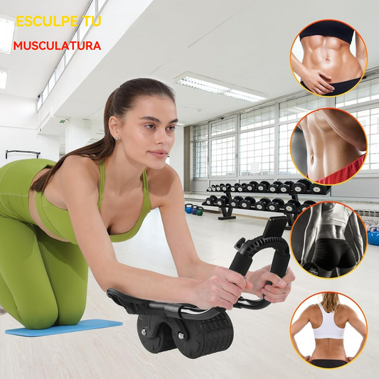 Rodillo abdominal de doble rueda con rebote automático y diseño antideslizante