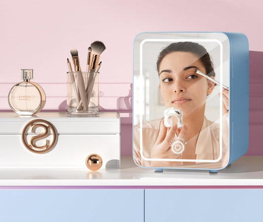 GlowMini – Refrigerador Portátil con Espejo LED Regulable
