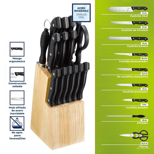 AHORRA EL 31%Juego de Cuchillos de Acero Inoxidable - 15 Piezas