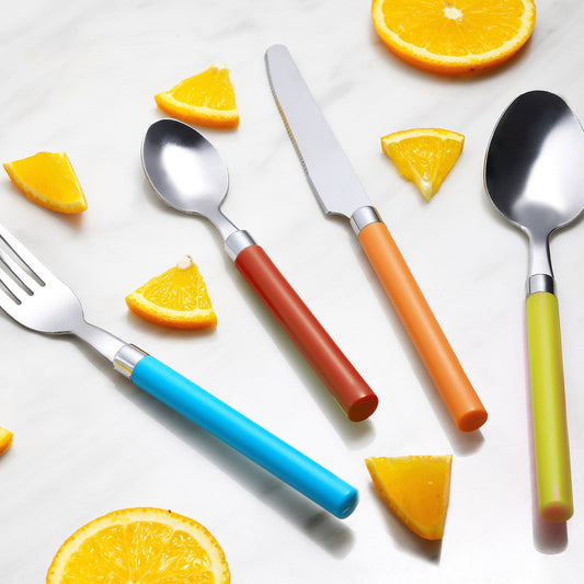 Lote 3 Sets Cubertería 24 Piezas Happie Colors Acero Inoxidable con Mangos Multicolor - Servicio para 18