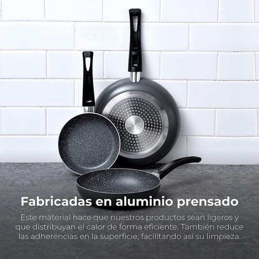 Juego de Batería de Cocina - 8 Piezas + Set de 3 Sartenes Soul Marble en Aluminio Prensado