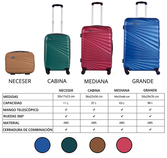 Juego de Maletas Rígidas - 3 o 4 Piezas, ABS Ecológico, Mango Telescópico y Ruedas 360º