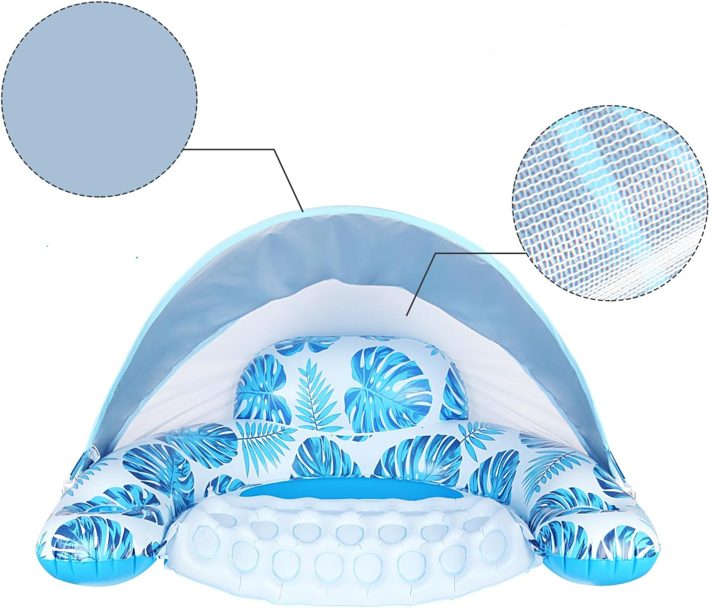 El flotador de piscina con sombrilla ajustable ofrece una sombra refrescante, protegiéndote del sol mientras disfrutas del agua. Perfecto para largas horas de relajación sin preocuparte por los rayos dañinos.