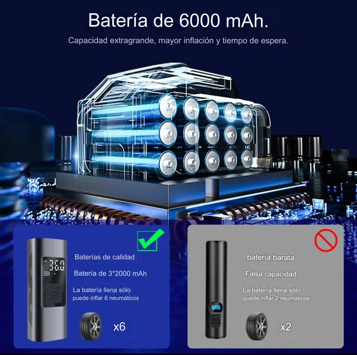 • Portabilidad Inalámbrica: Con su diseño inalámbrico, este inflador te brinda la libertad de inflar tus neumáticos en cualquier momento y lugar, sin depender de fuentes de energía externas.