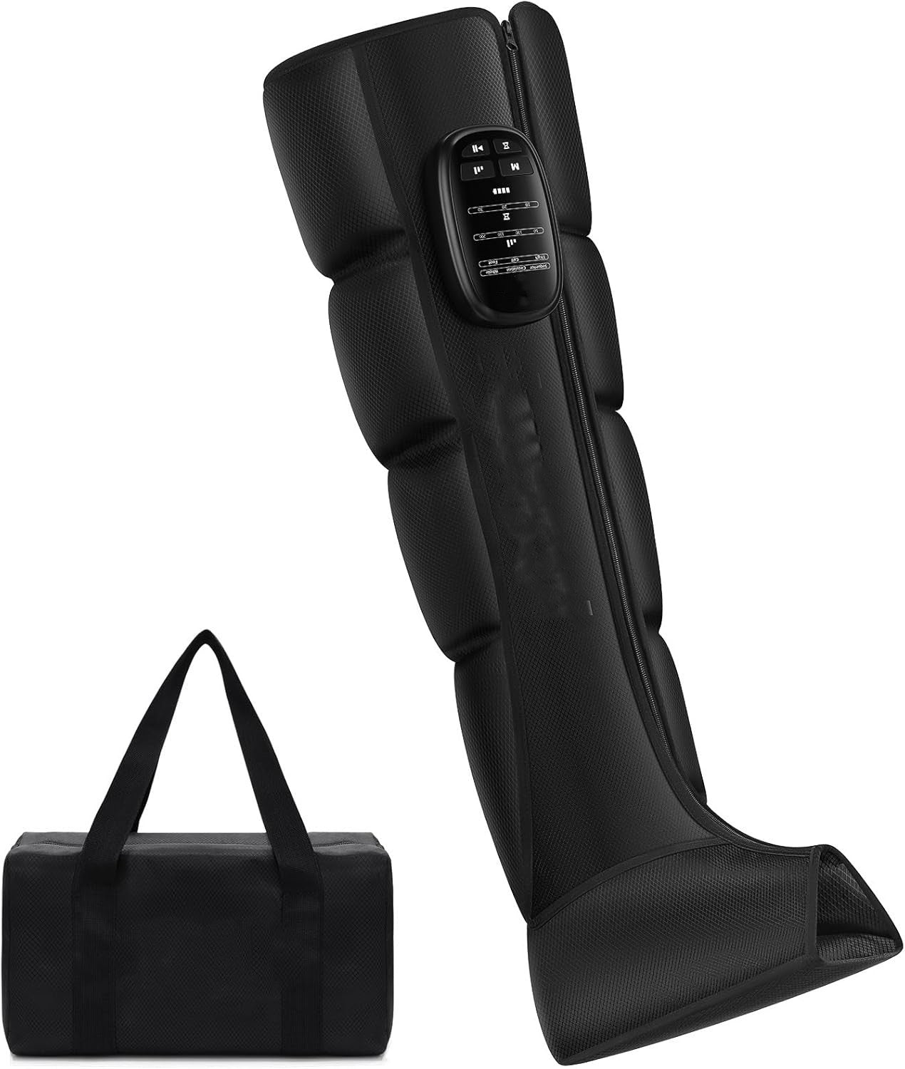 Fabricado en tela respirable con ajuste envolvente. Se adapta a pantorrillas, muslos o piernas completas. Cómodo incluso en sesiones prolongadas.